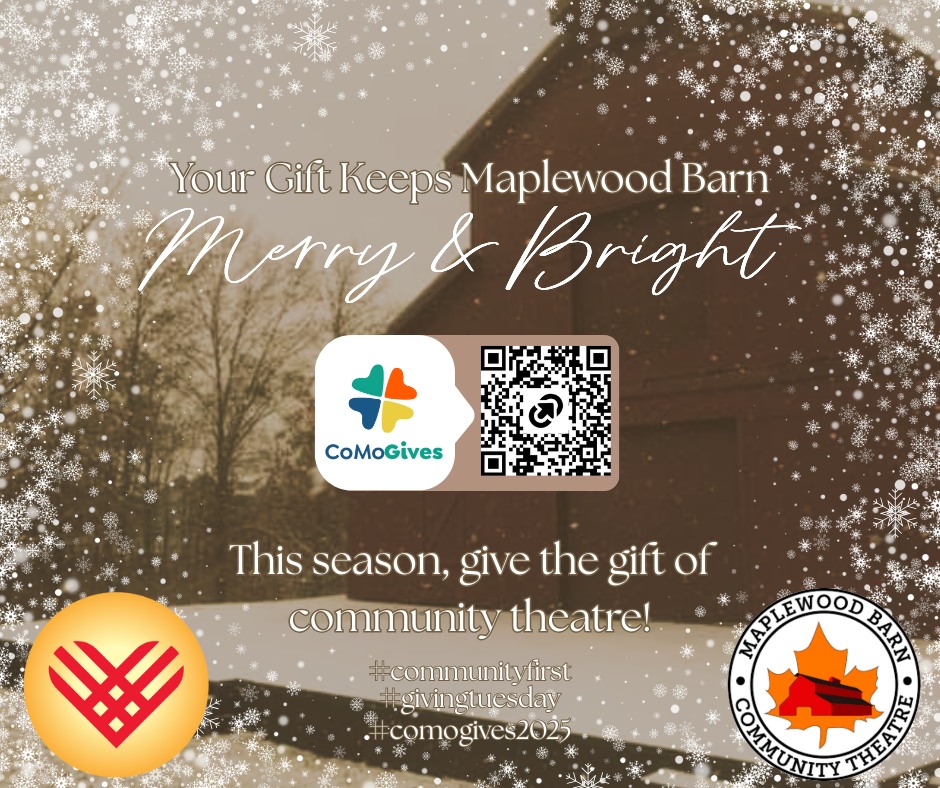 This Giving Tuesday, we’re asking our friends, neighbors, and Barnies to help keep the magic alive. Every donation through CoMoGives directly supports our mission to bring accessible, affordable, family-friendly theatre to Mid-Missouri. From summer nights to snowy days, your support keeps the lights glowing, the sets building, and the stage alive.