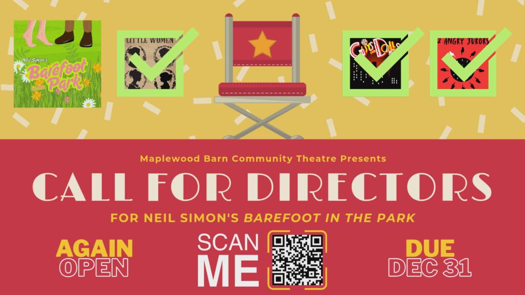 Due to some scheduling conflicts with our previous applicants, we’re reopening director applications for Barefoot in the Park.